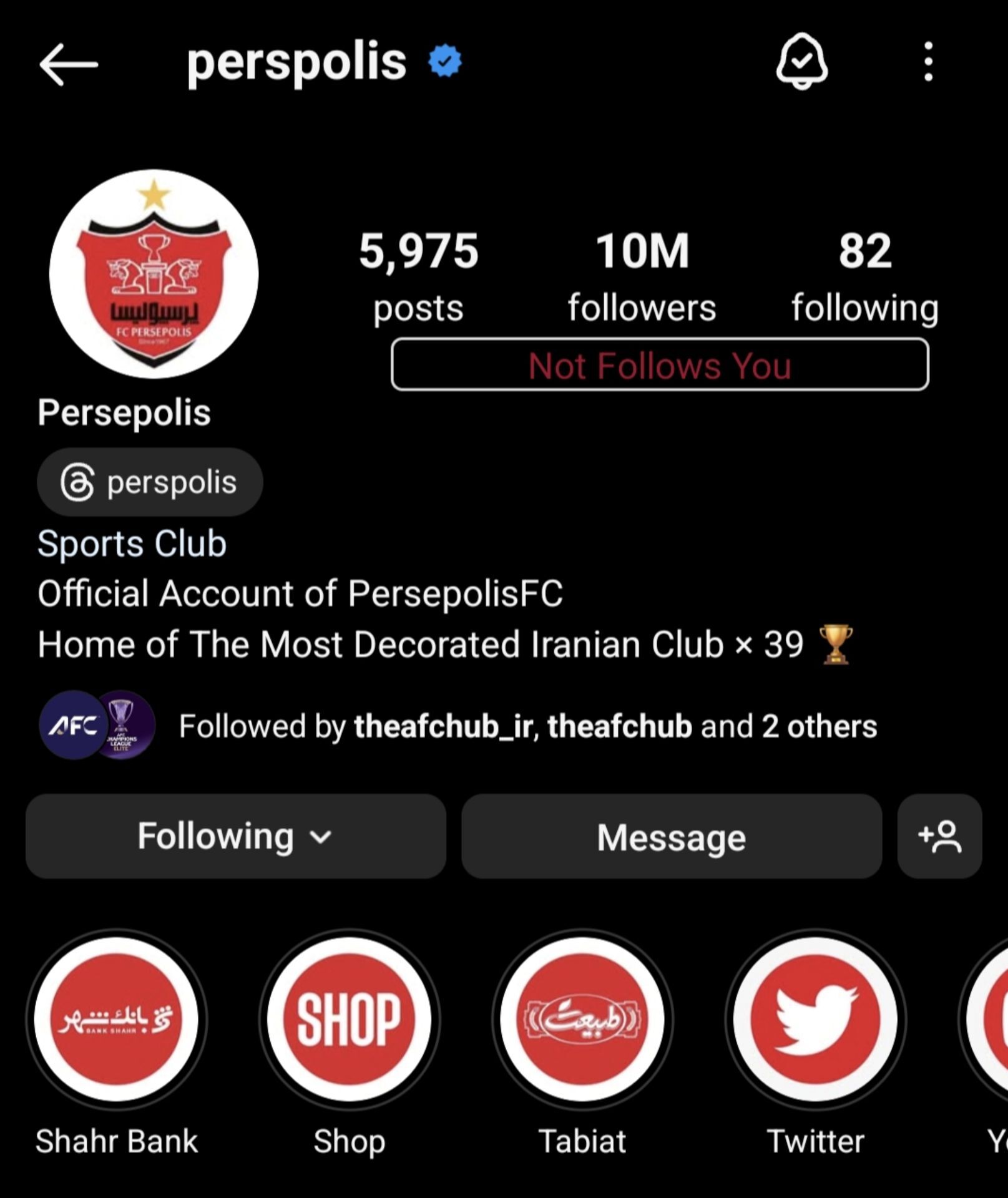 اینستاگرام پرسپولیس 10 میلیونی شد