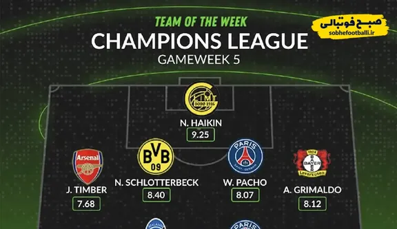 تیم منتخب هفته پنجم لیگ قهرمانان اروپا