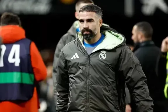 دنی کارواخال، کاپیتان رئال مادرید، در کنار زمین ورزشگاه آلیانز آرنا پس از اخراج ادواردو کاماوینگا به دلیل دریافت کارت زرد دوم بحثبرانگیز و گل لوئیس دیاز که نتیجه را ۳-۳ کرد و باعث حذف تیم سفیدپوش در تقابل یکچهارم نهایی مقابل بایرن مونیخ شد، به شدت خشمگین شد.