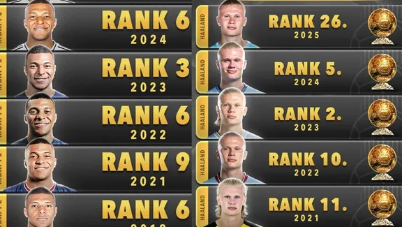 اما مسیر آنها همیشه صعودی نبوده است. کیلیان امباپه بدترین رتبه خود را در سال ۲۰۲۱ کسب کرد و به مقام نهم بسنده کرد. از سوی دیگر، ارلینگ هالند، ماشین گلزنی سیتی، در مراسم توپ طلای ۲۰۲۵ با رتبه ۲۶، یکی از پایینترین جایگاههای خود را تجربه کرد؛ رتبهای که با توجه به استعدادهایش، بسیاری را شگفتزده کرد. برای درک کاملتر این رقابت جذاب، جدول زیر تمام رتبههای توپ طلای این دو بازیکن را نشان میدهد.